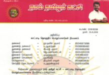 நாள்: 24.07.2019 சுற்றறிக்கை: வேலூர் நாடாளுமன்றத் தேர்தல் களப்பணியாளர்கள் தங்குமிடம் - ஆம்பூர் தொகுதி | நாம் தமிழர் கட்சி | க.எண்: 2019070134 எதிர்வரும் ஆகத்து 05ஆம் தேதி நடைபெறவிருக்கும் வேலூர் நாடாளுமன்றத் தேர்தலில் நாம் தமிழர்...